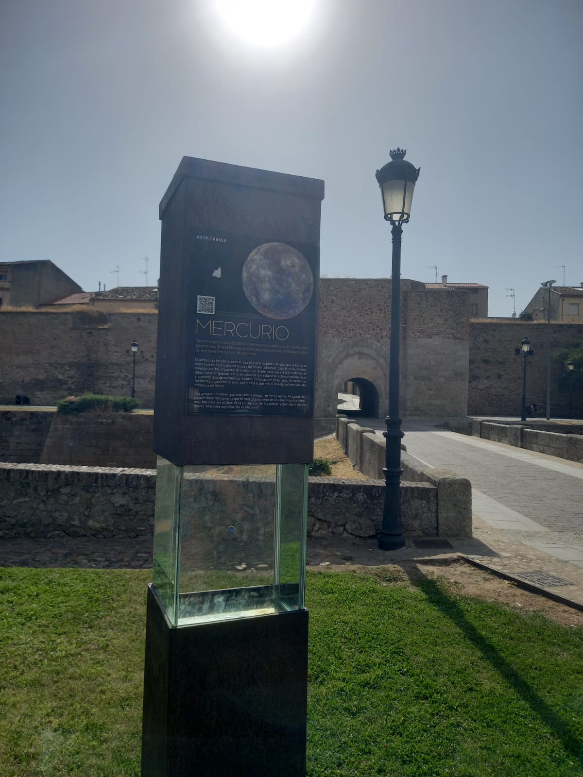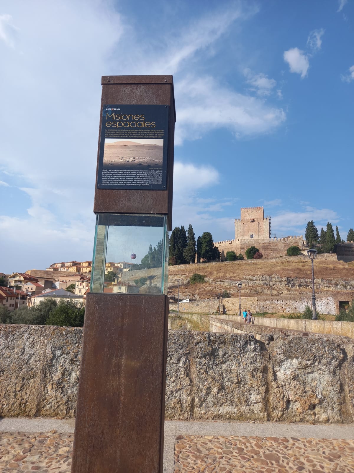 Este sí sabíamos que estaba ahí y a la que pasábamos, fuimos a buscarlo. El nombre del proyecto está muy bien puesto, es un sistema solar a escala. En distintos puntos de Ciudad Rodrigo y respetando las proporciones de los tamaños y las distancias entre el Sol y los planetas se sitúan maquetas de los cuerpos celestes acompañados, aquí sí, de carteles explicativos, datos y curiosidades. Durante el paseo, a la vez que ves y recorres la muralla de la localidad, te encuentras al Sol y los distintos planetas hasta Marte, mientras vas tomando conciencia de las proporciones entre los elementos. Si quieres ir más allá del cinturón de asteroides ya no se llama paseo, es una larga caminata que te llevará hasta Plutón, a 25 km del Sol, a escasos metros de la frontera con Portugal… cosas de la escala y las distancias cósmicas.