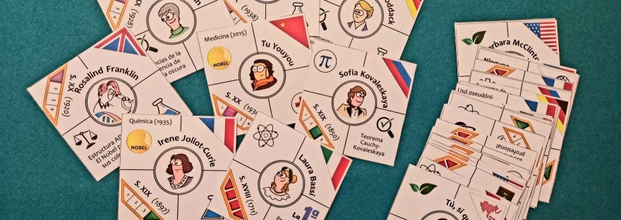 Las cientificartas es un juego de cartas protagonizado por 33 científicas que nos invitan a conocerlas, con el uso de su baraja, a través de diferentes modos de juego. Estas cartas contienen 4 datos muy básicos de las científicas: época a la que pertenecen, país de origen, rama científica de trabajo y algún detalle de interés sobre su vida o sus logros. Se trata de información seleccionada y su presencia visual en las cartas es eficiente para aprender algo sobre ellas con sólo jugar.